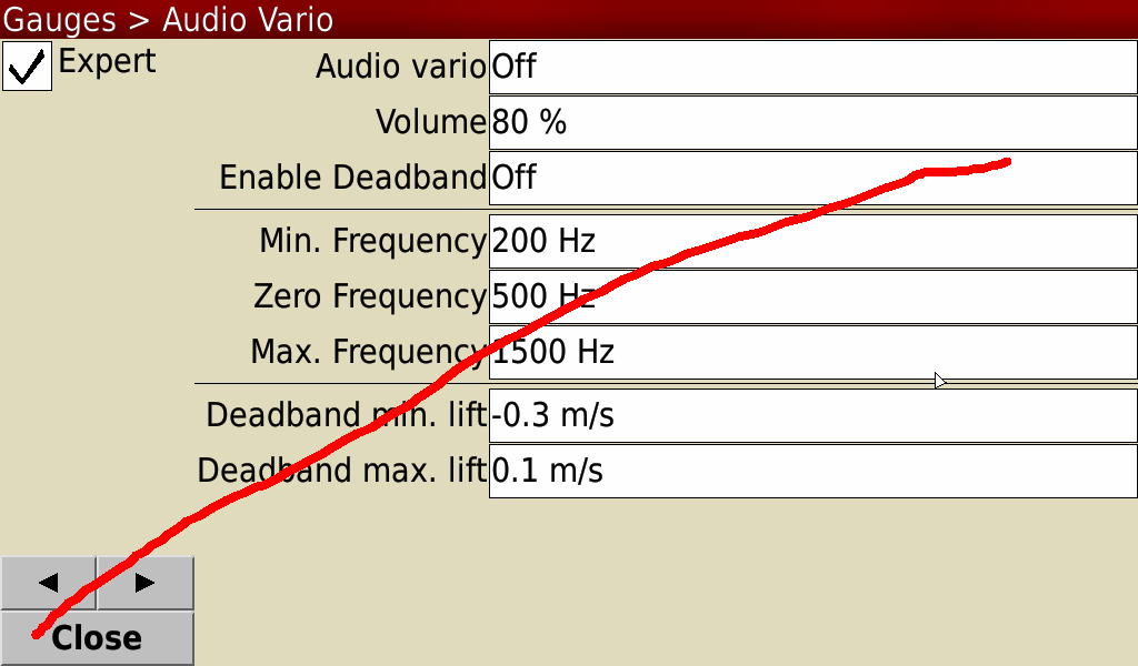 One note of warning, changes in XCSoar Config → System → Gauges → Audio Vario have no effect at all!
