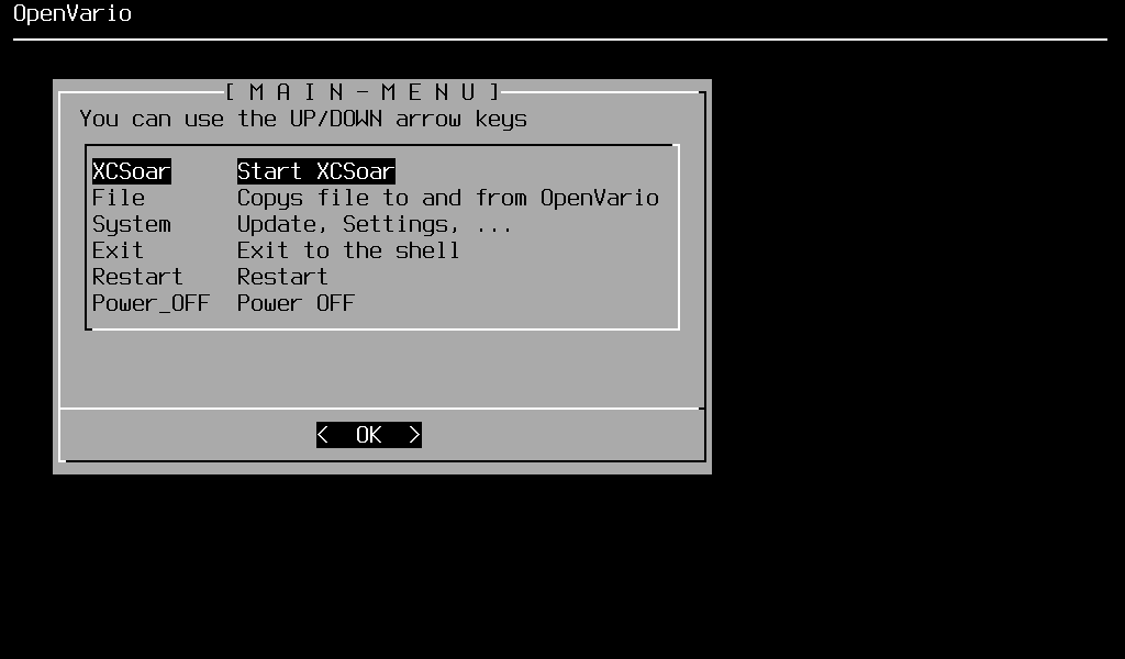 When you see the “Starting XCSoar…, press [ESC] for menu” press ESC to go to OVmenu (MAIN-MENU).
