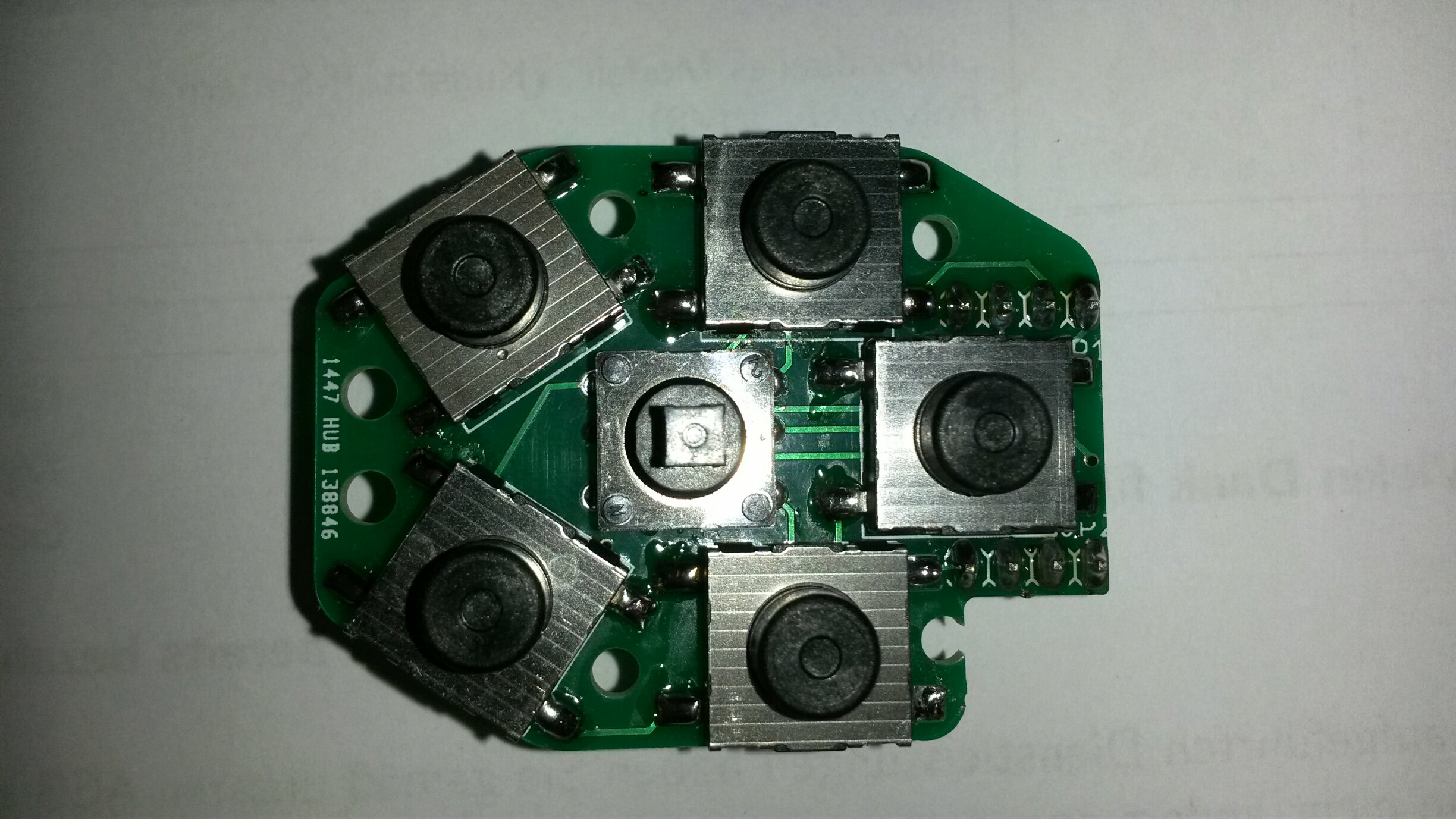 A stick mounted remote control was made from a very nice carbon stick grip (thank you Siegfried!), a small Arduino Leonardo clone and a few SMD pushbuttons. Attach the pushbuttons to Arduino digital inputs as shown in http://arduino.cc/en/Tutorial/InputPullupSerial. The Arduino emulates a USB keyboard or mouse, any button on the remote can be mapped to a “keyboard” key or mouse function. Yes, this means you can use this remote with any Android / Windows / Linux / etc. device that supports USB keyboard and mouse :-)