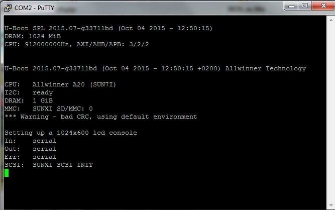 U-Boot 2015.07-g33711bd (Oct 04 2015 - 12:50:15 +0200) Allwinner Technology